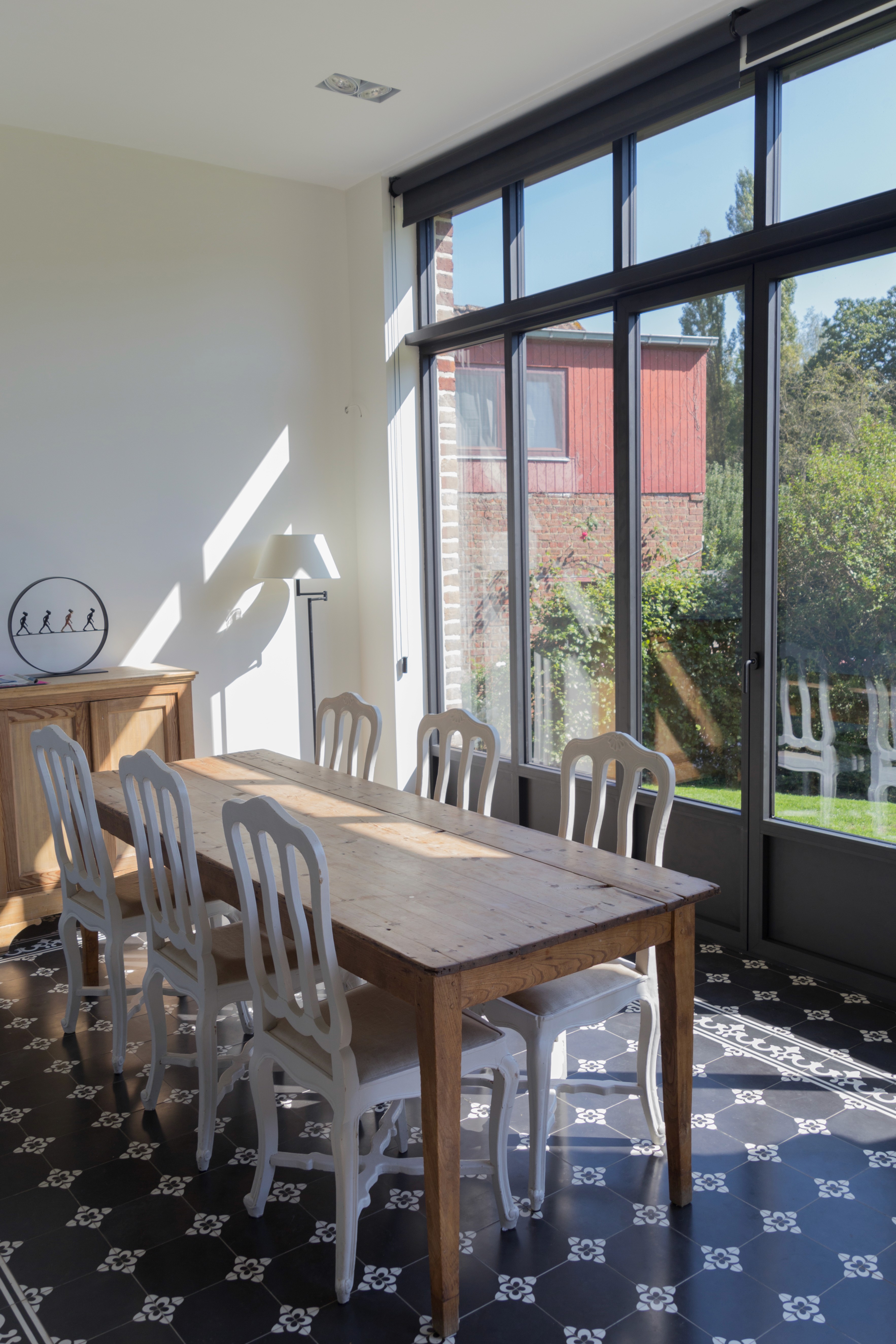 The project reinterprets a traditional brick house through a series of precise interventions that enhance light, circulation, and spatial continuity. Existing proportions and architectural details are preserved, allowing the original structure to remain legible while adapting the home to contemporary ways of living. Large framed openings introduce generous daylight and create strong visual connections to the garden, extending everyday spaces toward the landscape. Inside, the kitchen becomes a central living element—functional, open, and connected—balancing crafted joinery with calm material choices. The renovation maintains a dialogue between heritage and modern comfort, shaping a home that feels both rooted and quietly renewed.