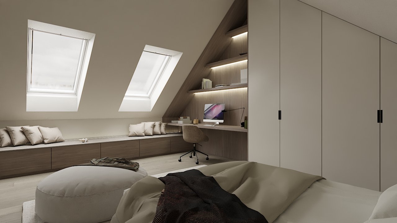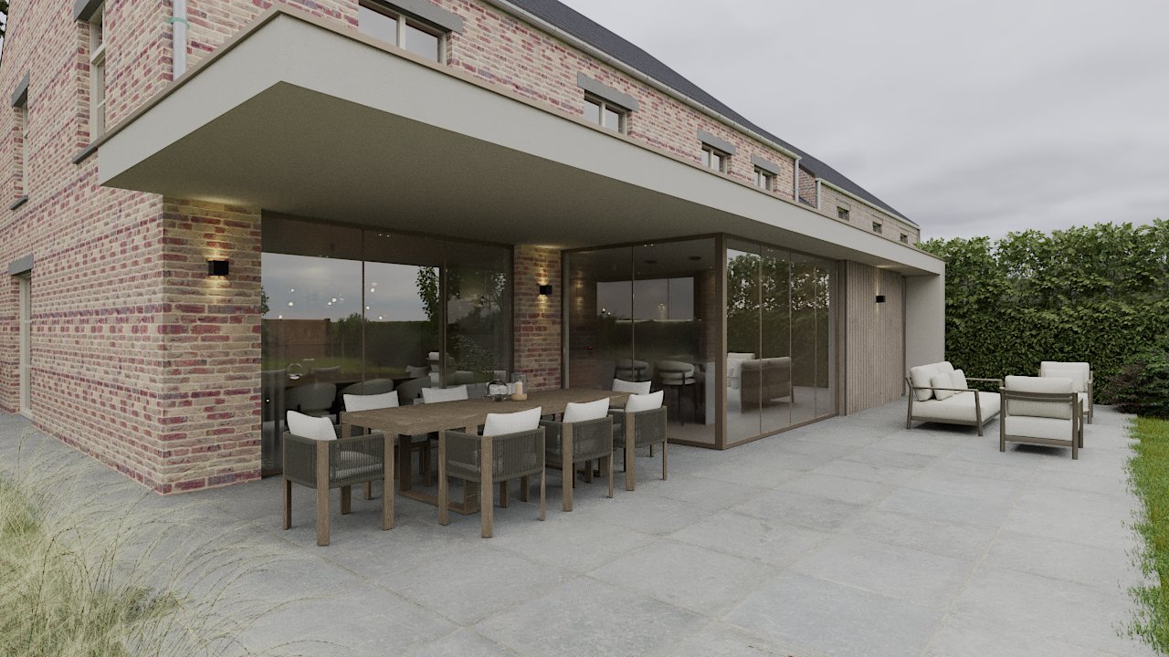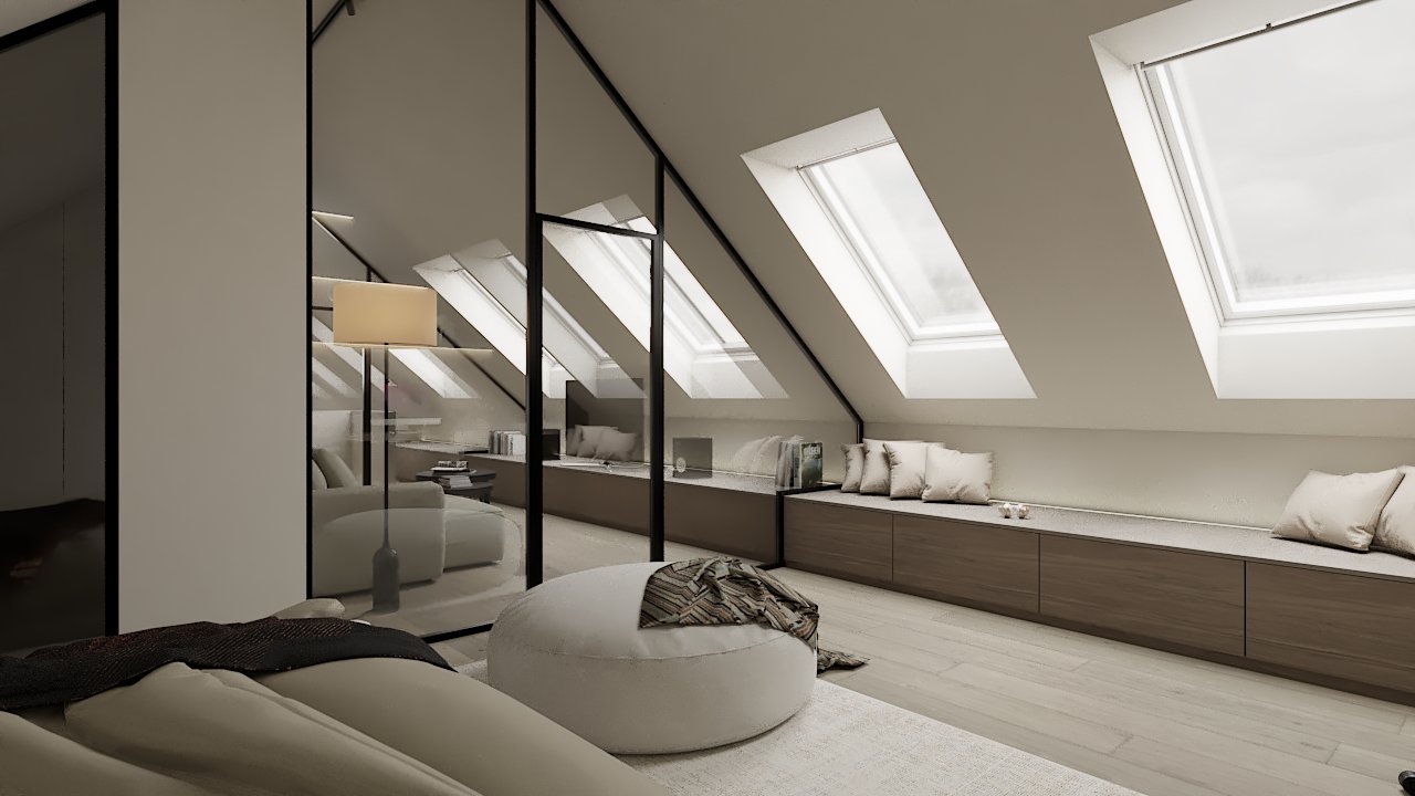 The architectural casquette extends the volume outward, creating a sheltered terrace that reframes the landscape and introduces new longitudinal perspectives. Inside, glass partitions, refined materials, and a controlled white palette reorganise circulation while amplifying natural light.The interplay between the original structure and the new cantilevered gesture anchors the home in a dialogue between heritage and modern spatial clarity.