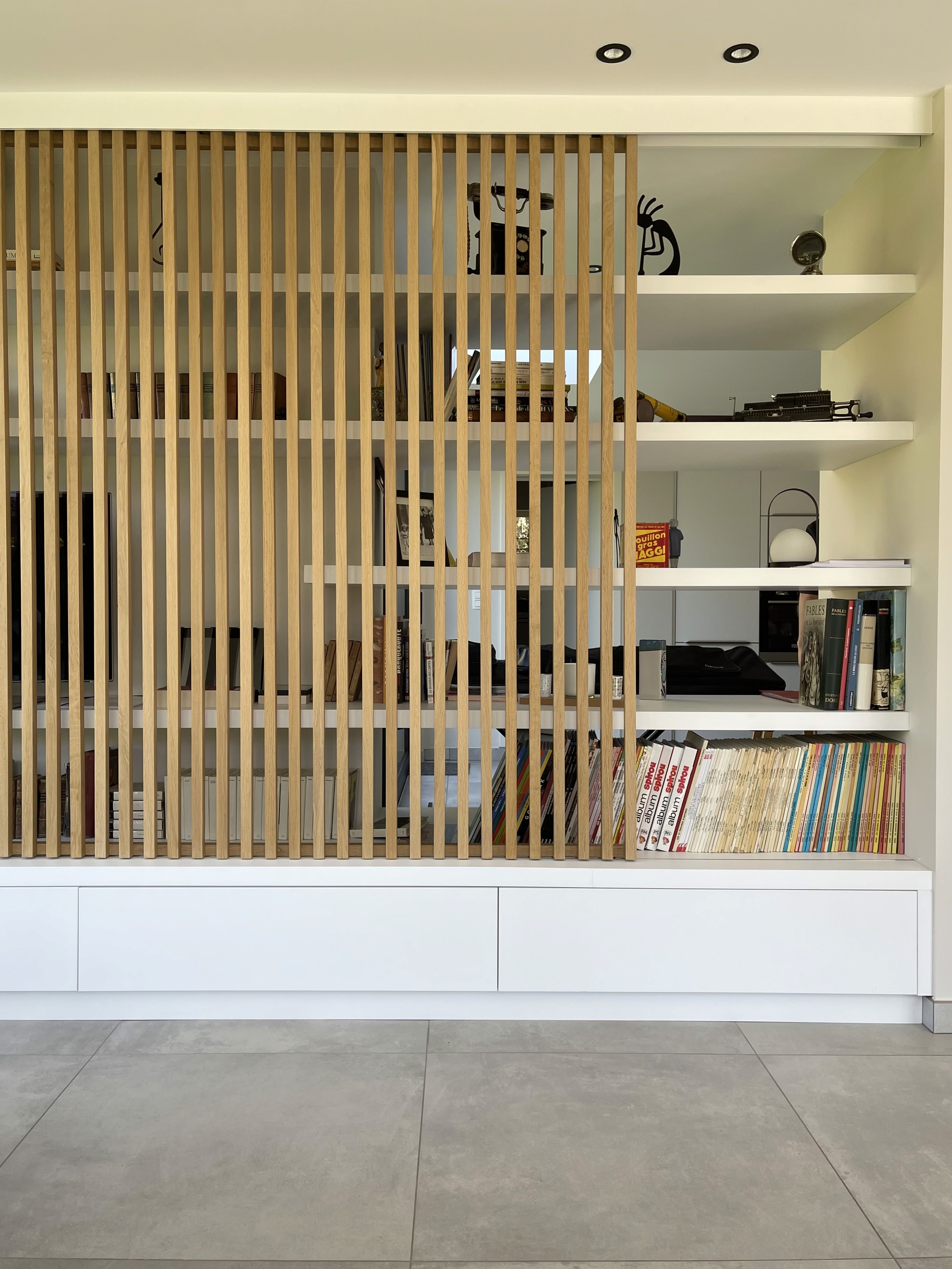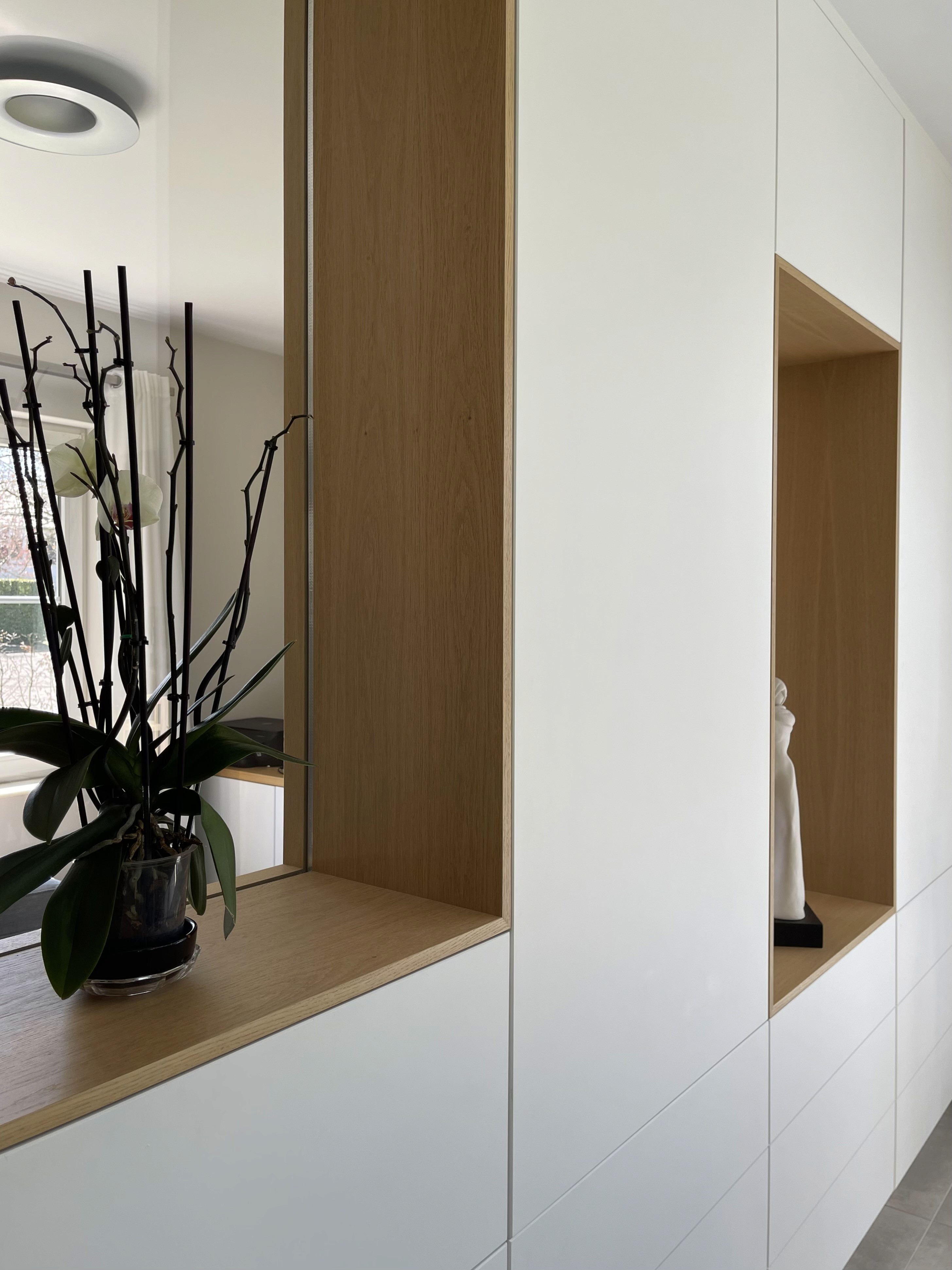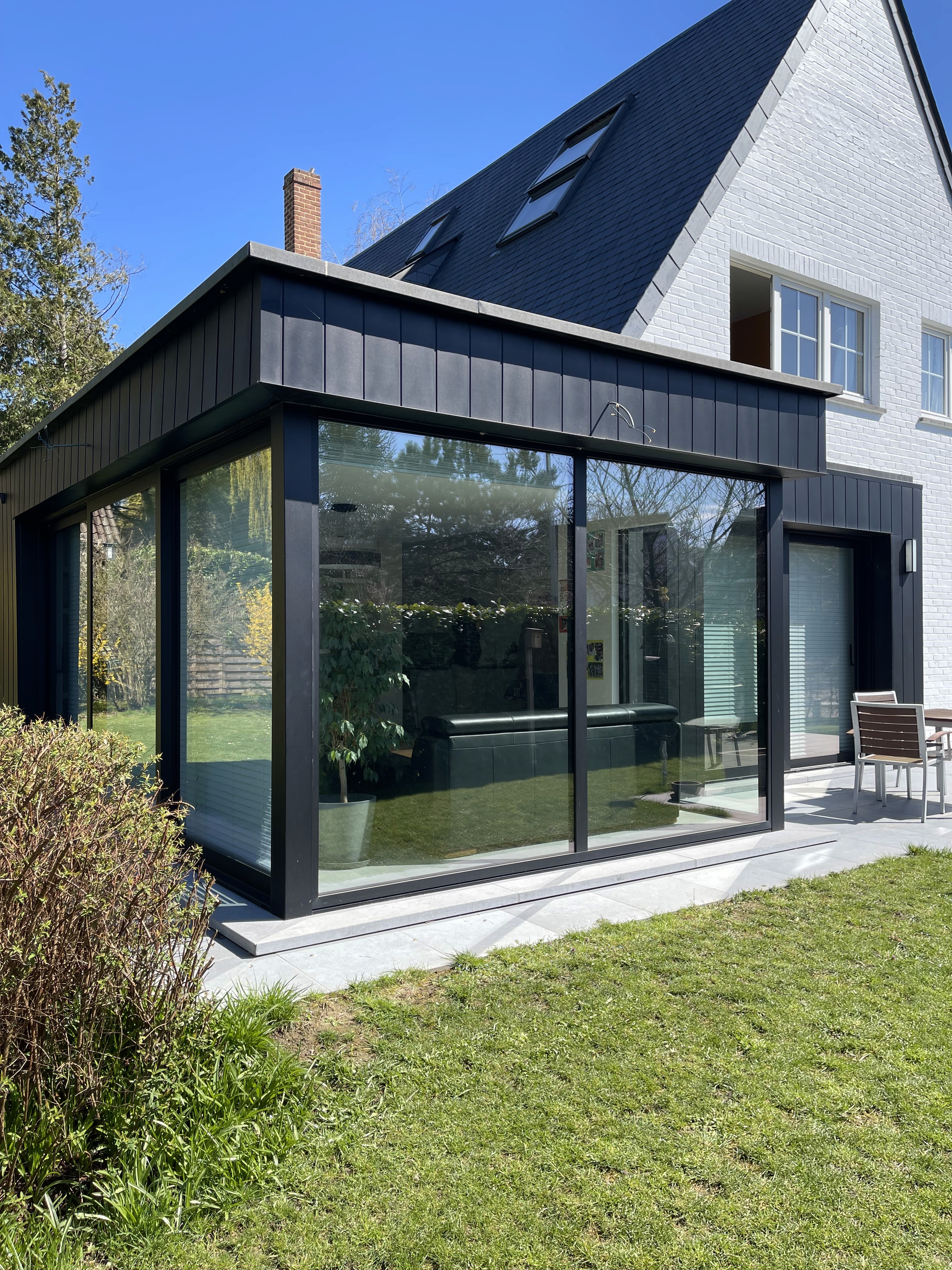 The new volume, defined by dark aluminium frames and full-height glazing, creates a sharp contrast with the existing structure while remaining proportionally balanced. Its transparency extends interior perspectives toward the garden, reorganising circulation and enhancing natural light throughout the living spaces. Inside, warm timber details and refined junctions soften the architecture, creating a seamless dialogue between the extension’s modern envelope and the home’s original character.
