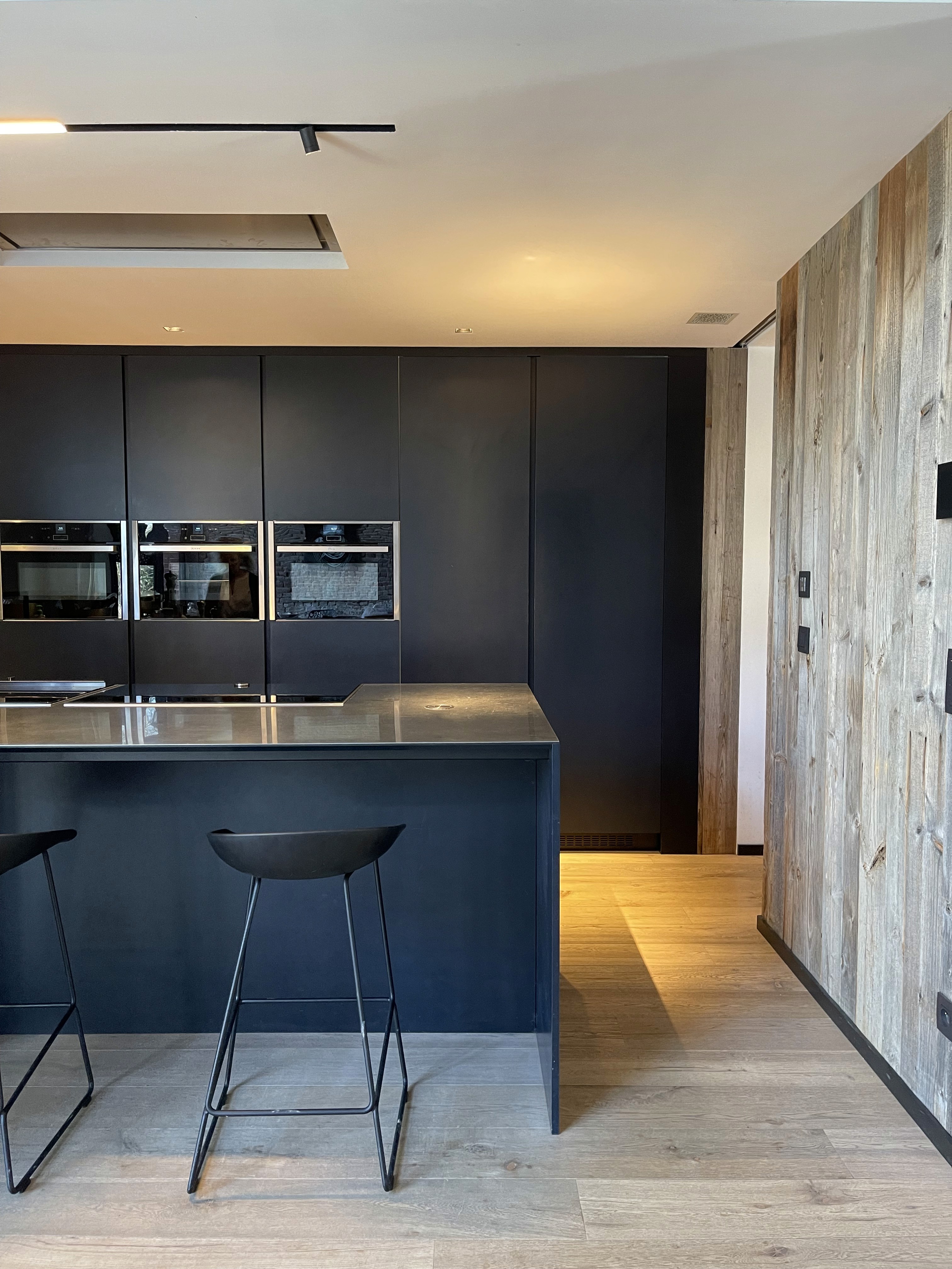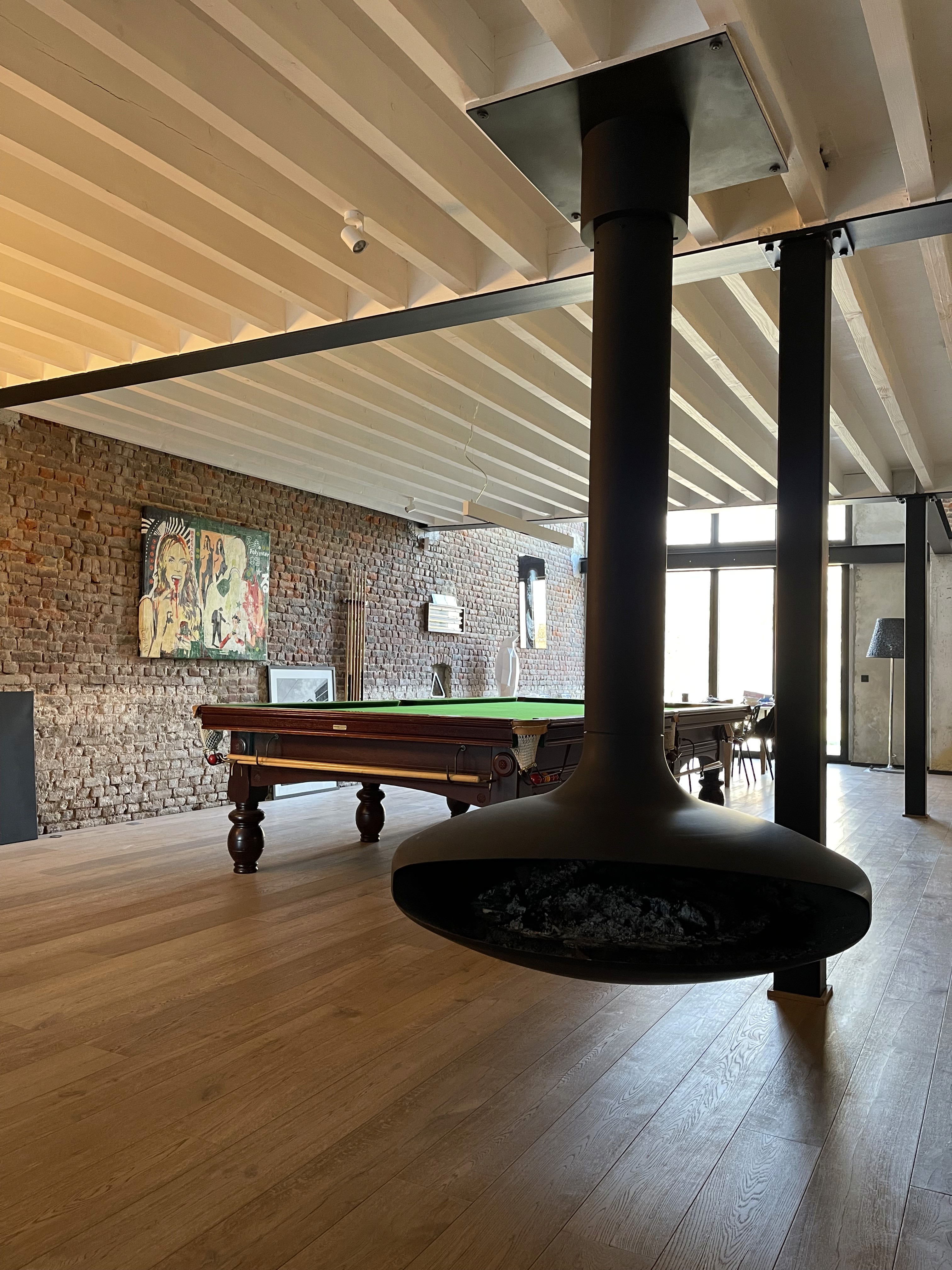 The project preserves the expressive character of the original brick walls and timber trusses, using them as structural anchors for the interior identity. Custom black joinery, sculptural furniture pieces and clean lighting lines bring a contemporary counterpoint to the raw envelope. The composition balances texture and precision, allowing each material : wood, metal, brick to articulate its role while maintaining a cohesive, inviting atmosphere.