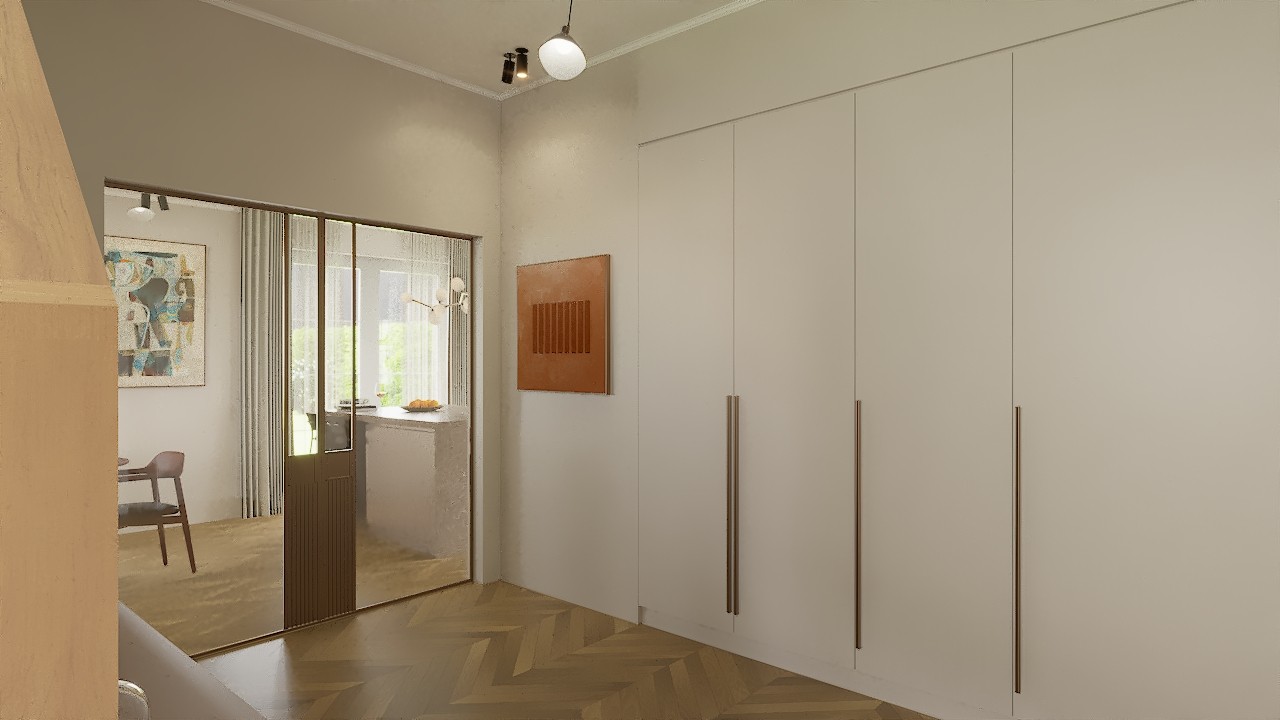 The project restructures the home through a consistent palette of warm neutrals, creating fluid transitions between rooms. Refined joinery, integrated storage, and precise detailing enhance spatial calm while optimising functionality. Natural light interacts with matte surfaces and soft textures, giving each space a serene yet contemporary character.